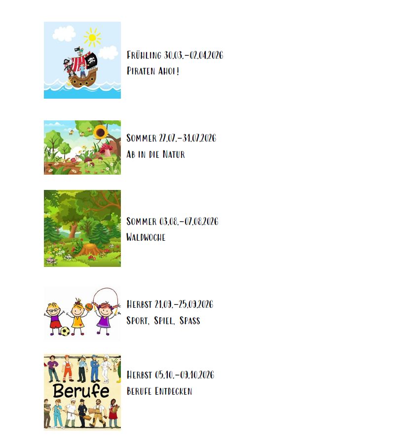 | Frühlingsferien | 30.03. - 02.04.26 | Piraten Ahoi! |
